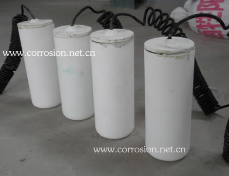 針對(duì)上述情況,我公司組織專(zhuān)業(yè)人員進(jìn)行抗壓長(zhǎng)效Cu/CuSO4參比電極的研究開(kāi)發(fā),在研究國(guó)外同類(lèi)產(chǎn)品的基礎(chǔ)上進(jìn)行了內(nèi)外結(jié)構(gòu)上的部分改進(jìn),電極體外殼采用ABS或高強(qiáng)度PVC管,并采用雙層半透明膜結(jié)構(gòu),內(nèi)外兩層半透明膜之間的空間填充特殊填料,有效控制了硫酸銅的滲透速度,在可以承受較大壓力的同時(shí)大大延長(zhǎng)參比電極的使用壽命。做到在大型儲(chǔ)罐基礎(chǔ)中使用時(shí)性能可靠,使用壽命長(zhǎng),而且抗壓耐摔。